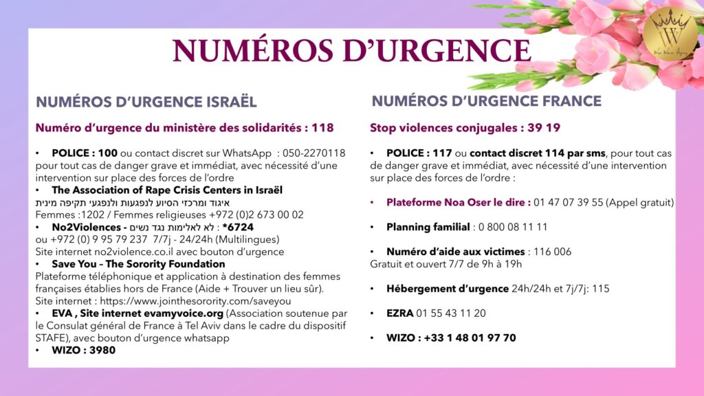 En France, 26 institutions communautaires (dont le FSJU, le Consistoire, Noa Oser le Dire, WIZO…) avaient déjà tirer la sonnette d’alarme et signé une charte d’engagement contre les violences conjugales en 2019, s’engageant à la prévention et l’accompagnement. Selon le CRIF, “une femme sur trois est victime de violences au cours de sa vie”, sans distinction communautaire. Ce dispositif souligne que la communauté juive en France n’échappe pas au fléau des violences familiales avec des estimations malheureusement équivalentes aux données nationales.